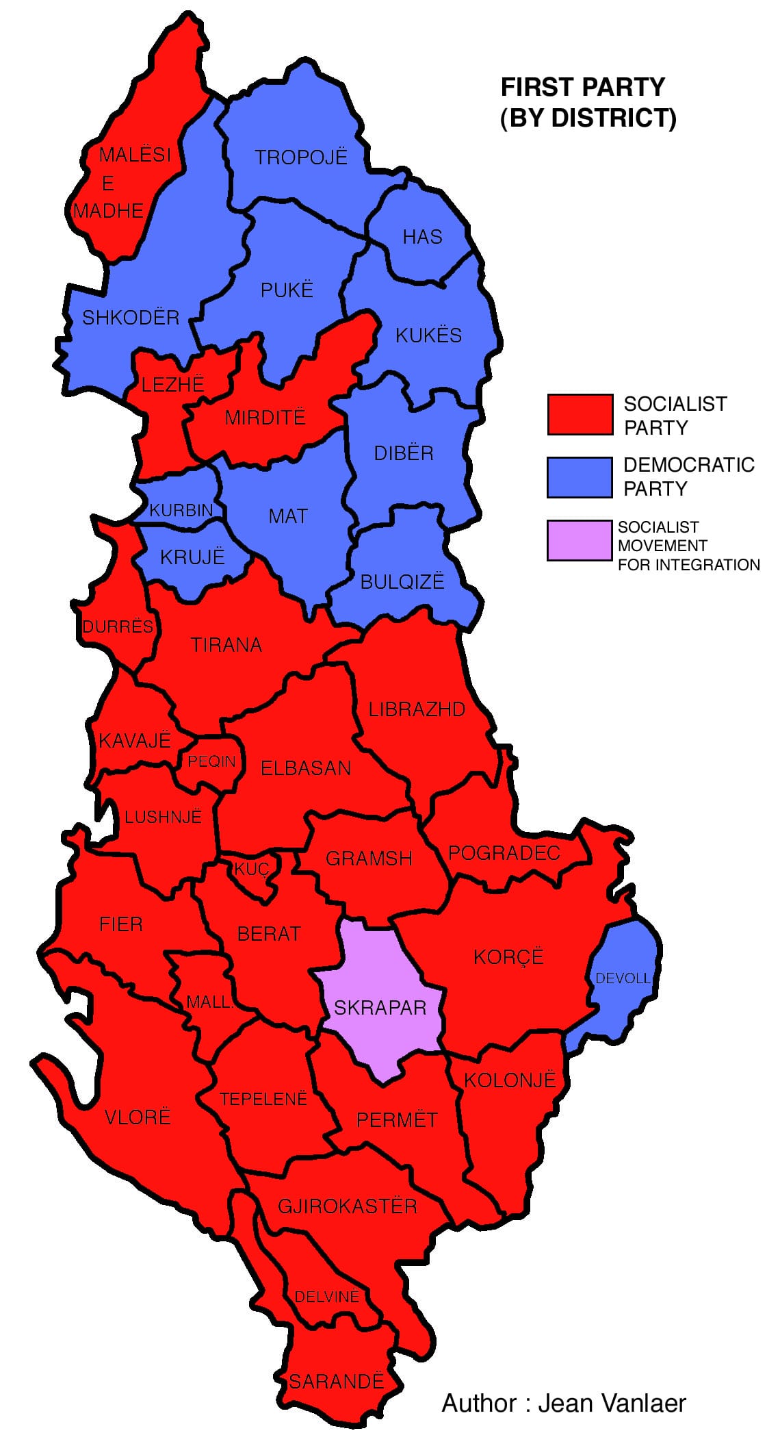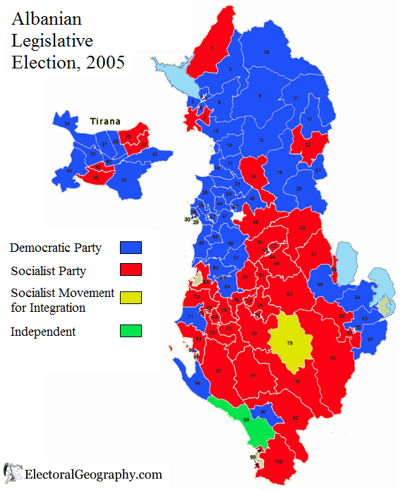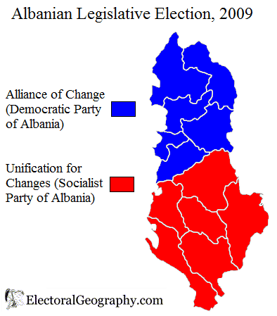 Arnavutluk siyasetinde ne kadar ABD yada AB yanlısı Sosyalist ve Kapitalist gibi ayrımlarla partilerin oluştuğu görülse de seçim sonrası haritalarda görülen bir ayrımda Kuzey, Güney Arnavutluk içinde bir siyasi ayrım olduğu görülmektedir. Bunda Tosk, Geg Arnavutların partilere göre biraz ayrıştığı görülmektedir.
