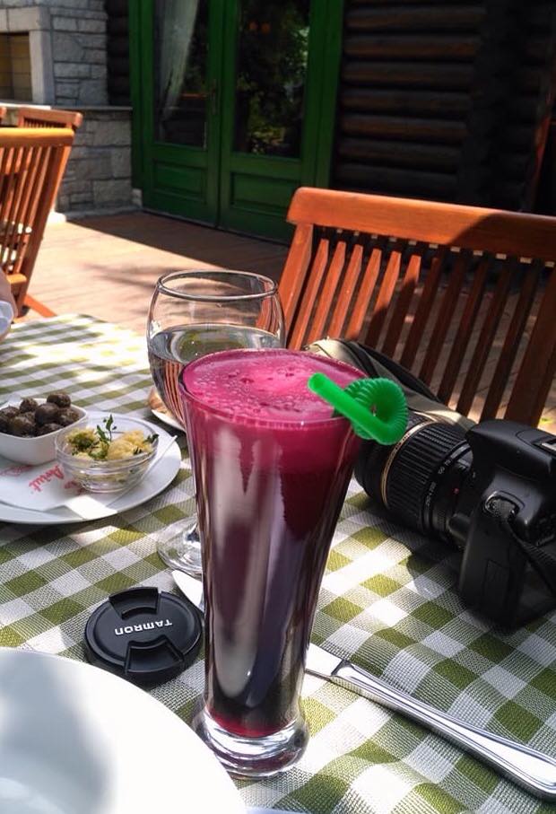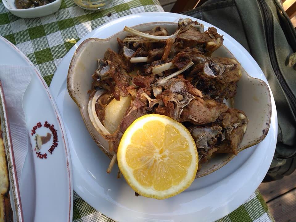 Menümüzde pancar suyu, Elbasan tava, keçi pirzola ve salata vardı,