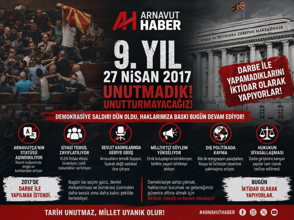 2017’de Talat Xhaferi’nin meclis başkanı seçilmesi sonrası, VMRO-DPMNE çevresindeki radikal unsurların ve dış bağlantılı yapıların Makedonya Parlamentosu’nu basarak gerçekleştirdiği darbe teşebbüsünün üzerinden 9 yıl geçti. O gün, yalnızca bir siyasi kriz değil; aynı zamanda çok etnisiteli yapının, demokratik düzenin ve özellikle Arnavutların siyasi kazanımlarının hedef alındığı karanlık bir dönüm noktası yaşandı.